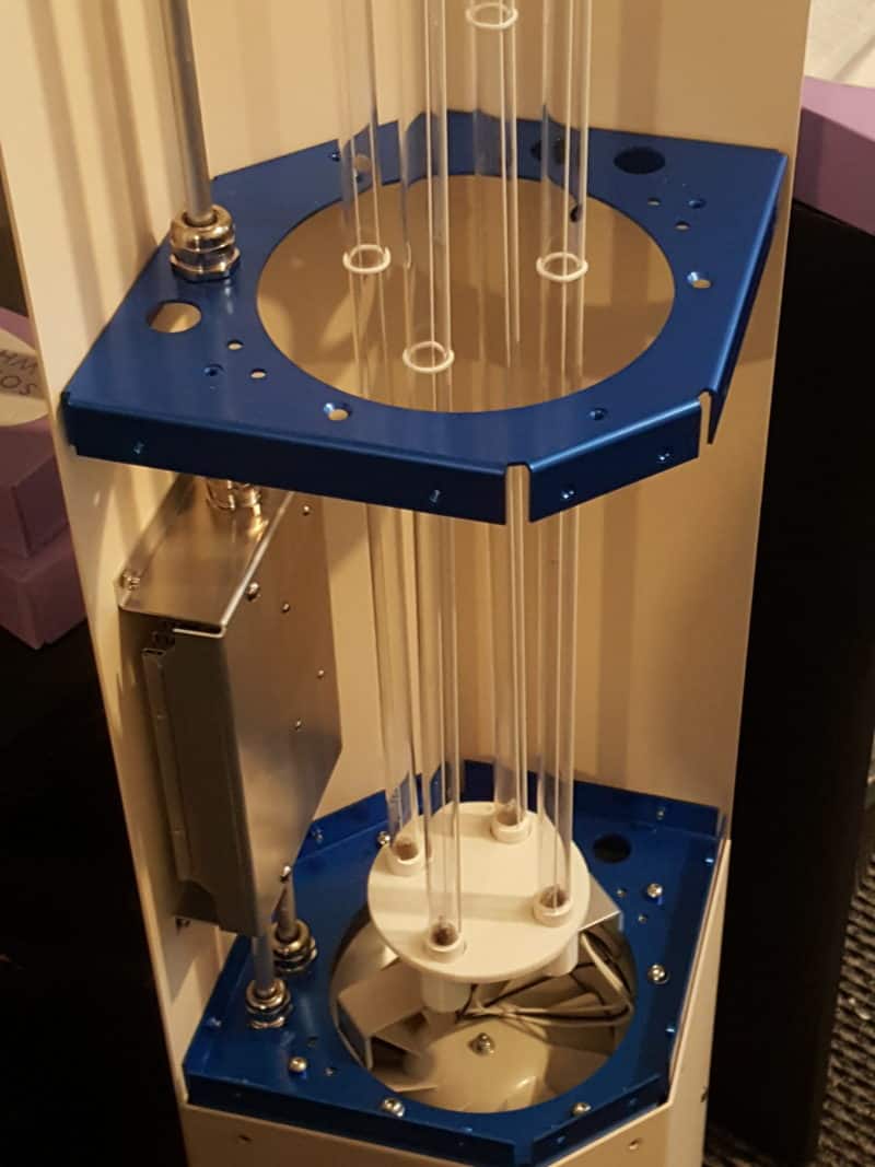 PB: No, it is very quiet, around 45 db. The system can also be programmed to turn on and operate on a powerful mode, let’s say, an hour before the school class starts so the air is treated several times. When the class starts, it can slow the air flow into a whisper-quiet phase which also increases the Lethality of the Radiation Chamber.