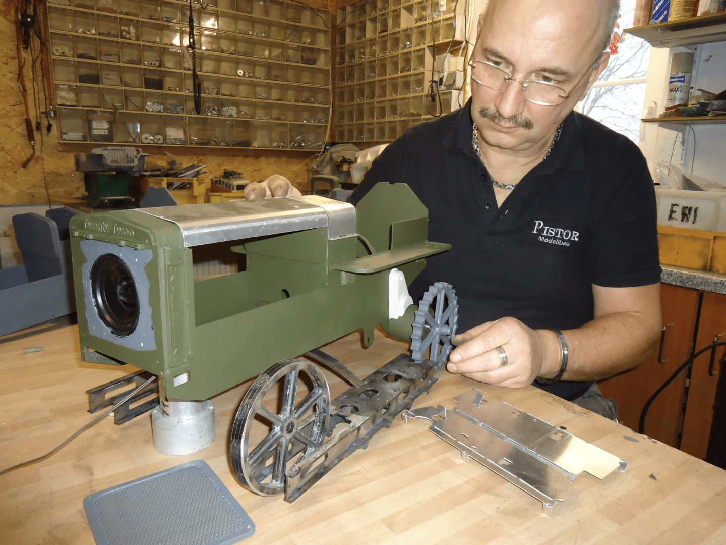 Before he turned his hobby into a career, Pistor trained as a lathe and milling worker. Nowadays he builds working models to order, produces model accessories, and sells his work in his online shop. His models include tanks, trucks, diggers, agricultural machines and much more.