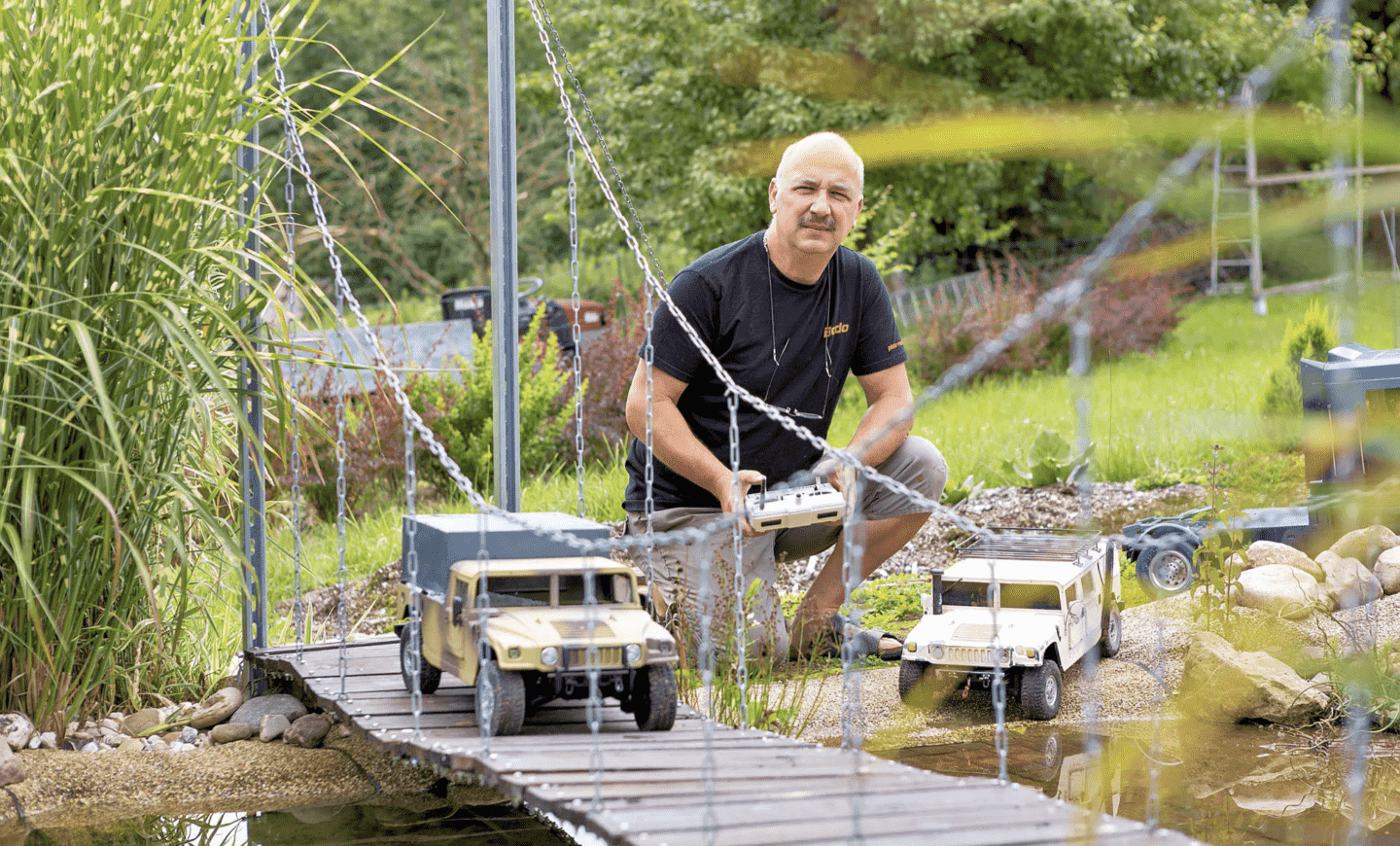 Pistor is renowned among model building enthusiasts for his large working models. For example, he has previously built a 180 kg tank in 1:5 scale that is 1.5 metres long and has a full drive system with 2 electric motors. Every summer Pistor organises an event in his garden, which is much appreciated by the community of model enthusiasts. In the summer of 2021, enthusiasts brought over 80 models to showcase the driving terrain at Pistor Modellbau.
