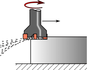 Cutting action of an end mill cutter on the surface of a workpiece (Source: Wikipedia.com)