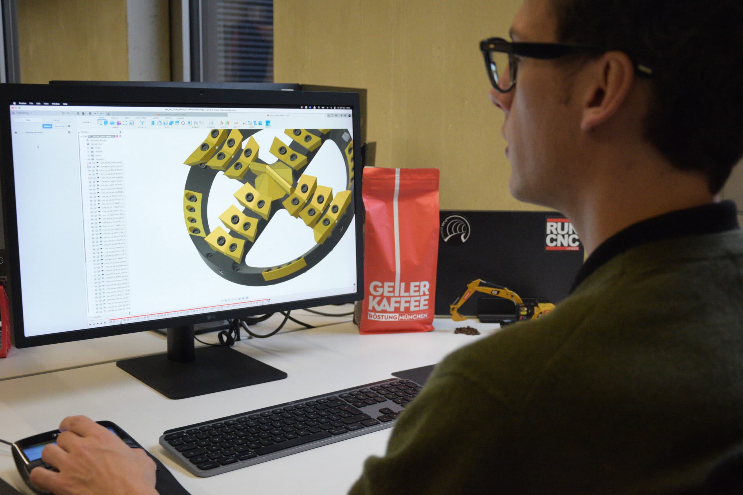 Working on the tunnel boring machine’s design process in Autodesk Fusion